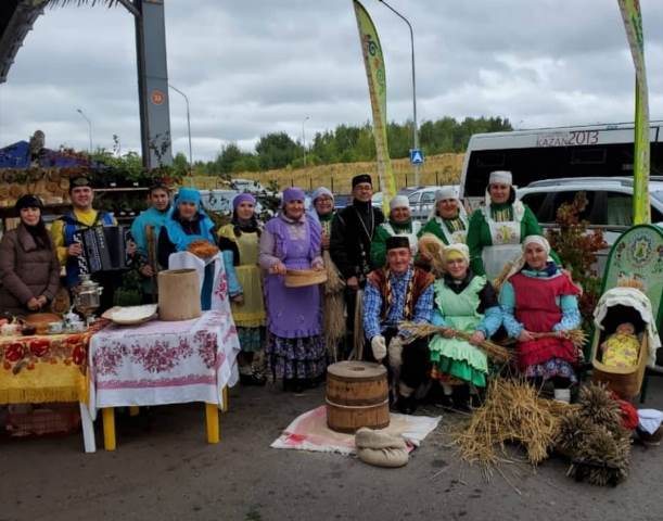 12 сентября на Казанском "Агропромпарке" стартовали осенние ярмарки. Совершая покупки на ярмарке горожане погружаются и в мир сельской культуры и быта. Сегодня их ждал сюрприз, подготовленный отделом культуры Сабинского района. Казанцы с большим интересом наблюдали за тем, как по старинному, ручным посильным трудом заготавливаются снопы пшеницы, каким образом выбивается зерно, которое пропускается через жернова превращаясь в муку, как замешивается тесто и приходит на стол хлеб. Данные действия, выполняя под татарские народные песни, представили специалисты Шикшинского СДК и СБ, Изминского СДК, Сердинского, Утернясского, Пукальского, Илеберского СК.