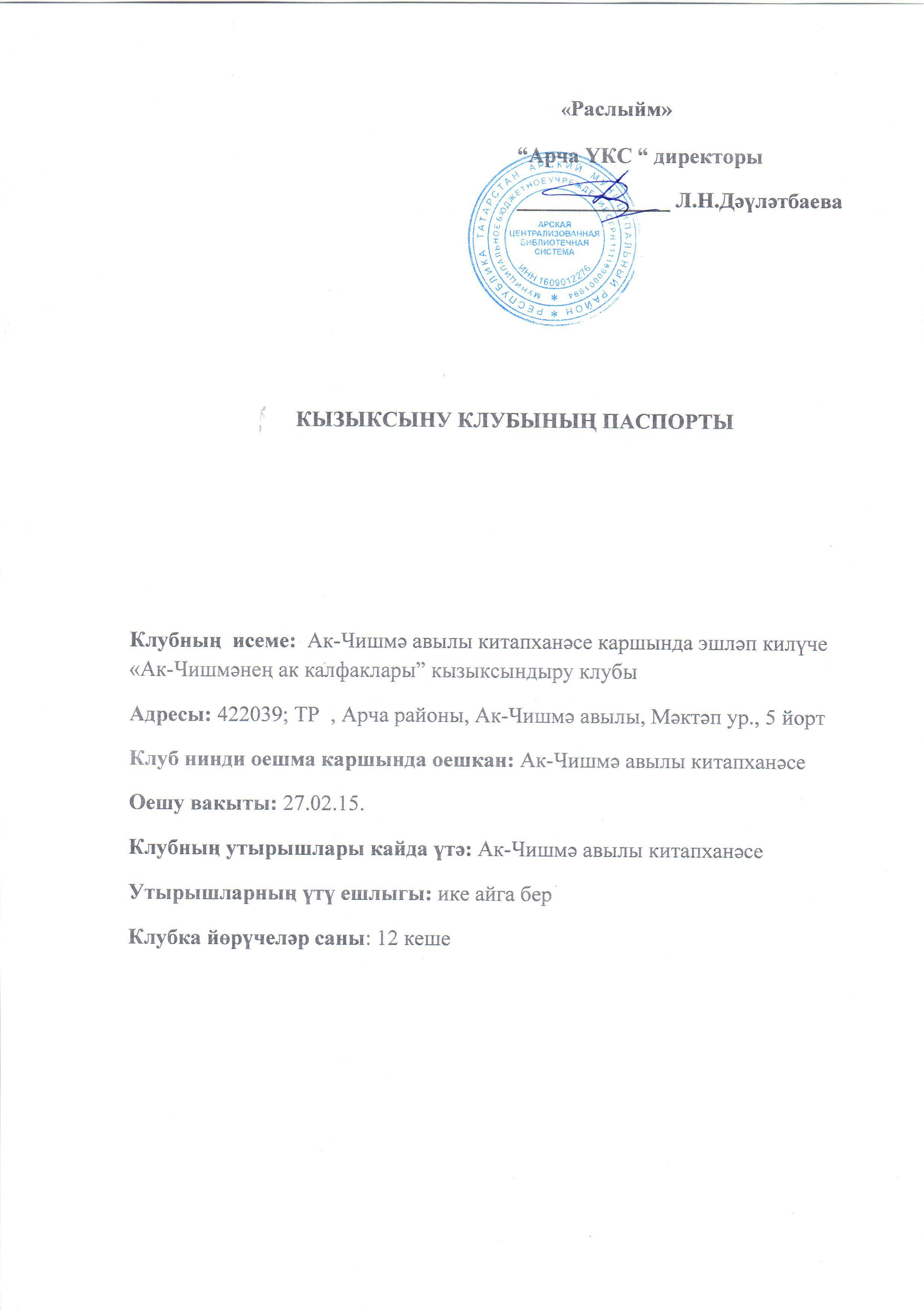 МБУ «Арская централизованная библиотечная система» Арского муниципального района РТ