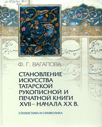Вагапова Ф.Г. Становление искусства татарской рукописной и печатной книги XVII –началаXX в. Стилистика и символика.- Казань: Татар.кн.изд-во,2021.-189с.