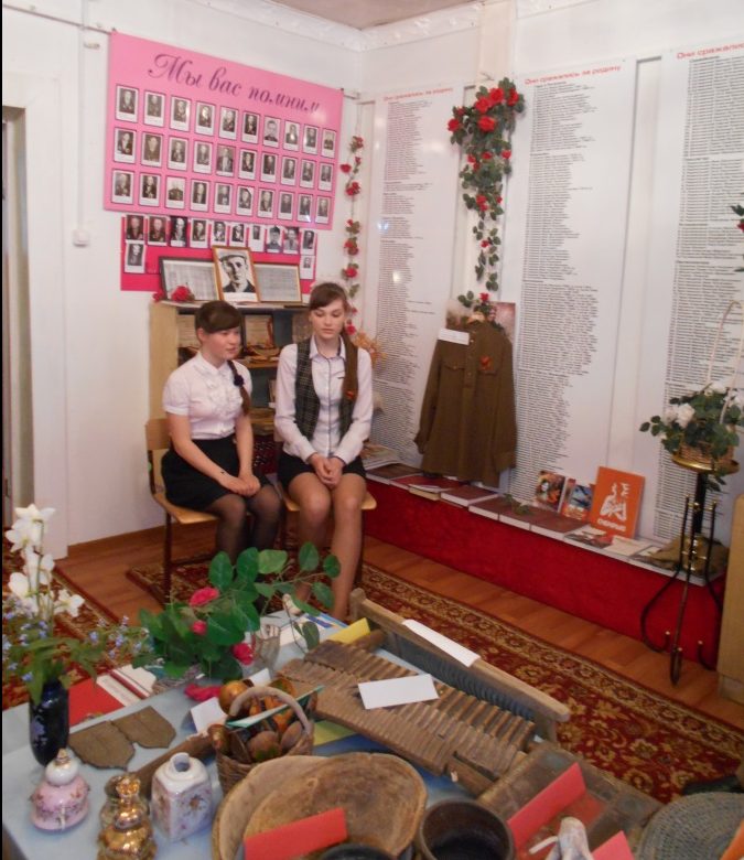 Китапханәче Фирдания Закирова балаларга Бөек Ватан сугышы турында сөйләде. Һәлак булганнарны бер минут тынлык белән искә алынды. Балалар С. Михалков, К. Симонов, М. Җәлил, А. Усачевның тугрылык һәм батырлык турында шигырьләрен бик сәнгатьле итеп сөйләделәр.