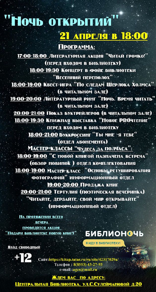 Библиотеки Альметьевской ЦБС 21 апреля приглашают всех желающих стать участником Ежегодной Всероссийской Акции "Библионочь 2017"!