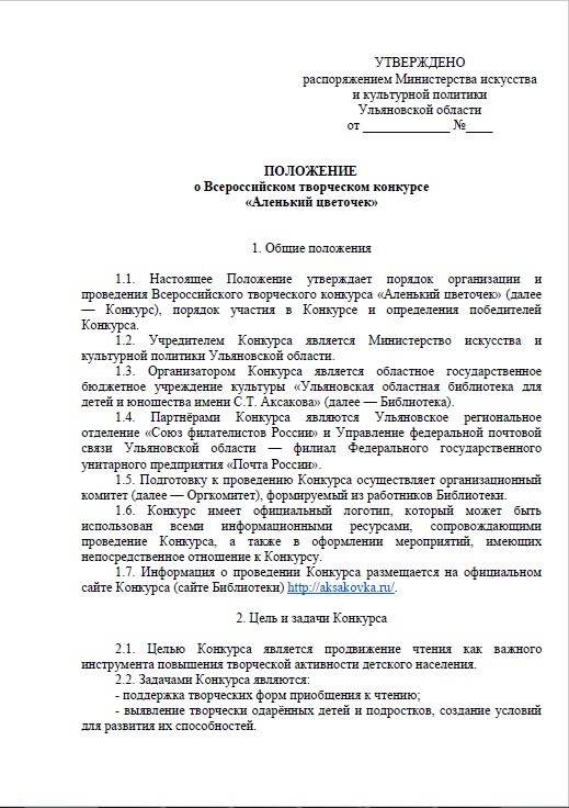 Положение о Всероссийском творческом конкурсе «Аленький цветочек»