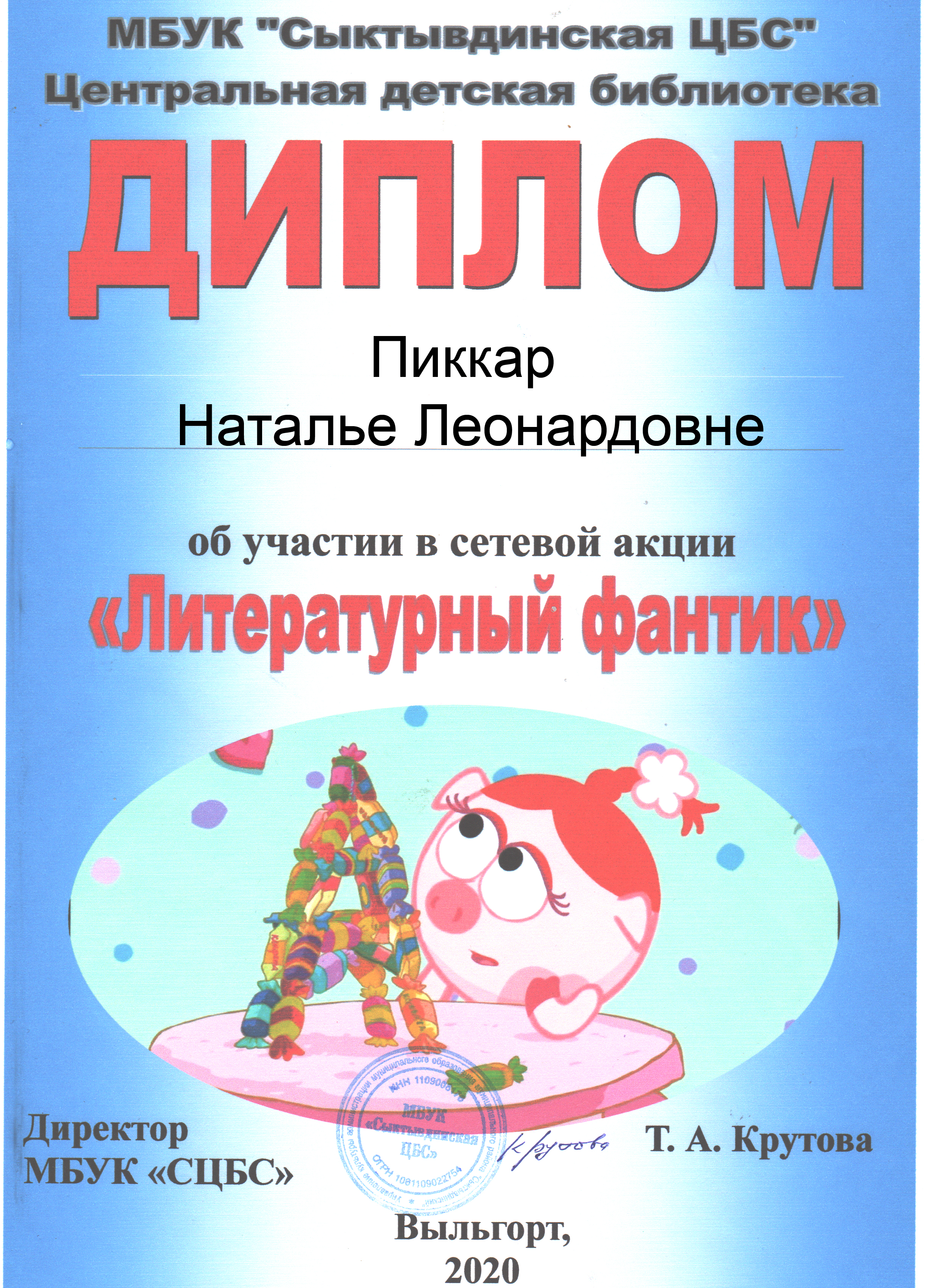 Ведущий библиотекарь Молодежной библиотеки — филиала №1 приняла участие в сетевой акции «Литературный фантик» МБУК «Сыктывдинской ЦБС».