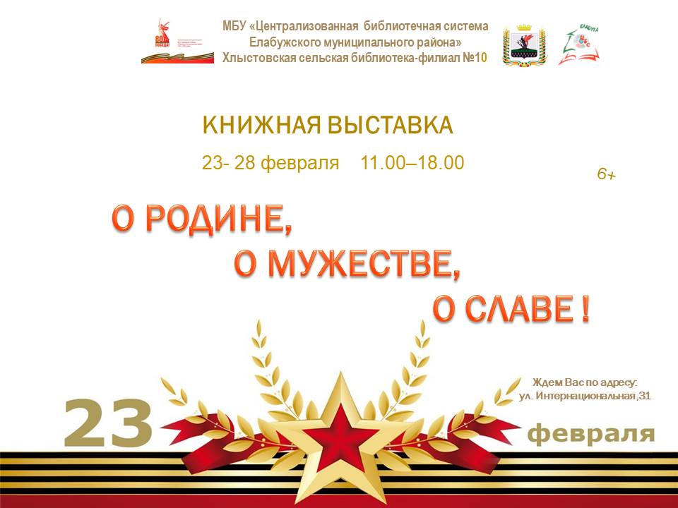 Книжная выставка "О Родине, о мужестве, о славе!"