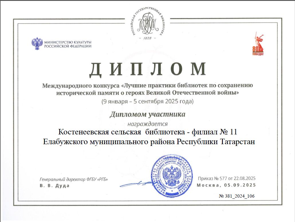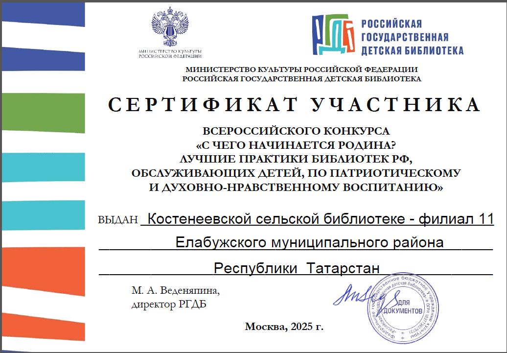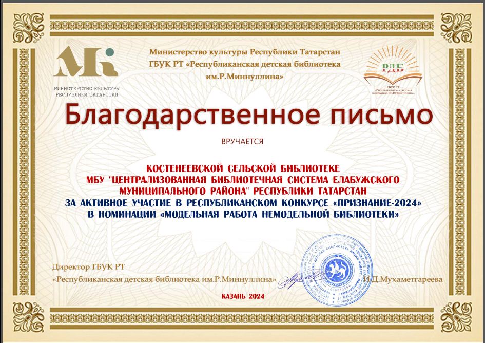 Костенеевская сельская библиотека выиграла грант 30 тысяч рублей в конкурсе «Сокровища большой страны 2018» Благотворительного фонда "Созидание" (г. Москва) в номинации "День здоровья" за проект «Книга, спорт, игра – ура!». На соискание грантов было прислано более 100 проектов, получат грант три библиотеки, среди них и наша.
