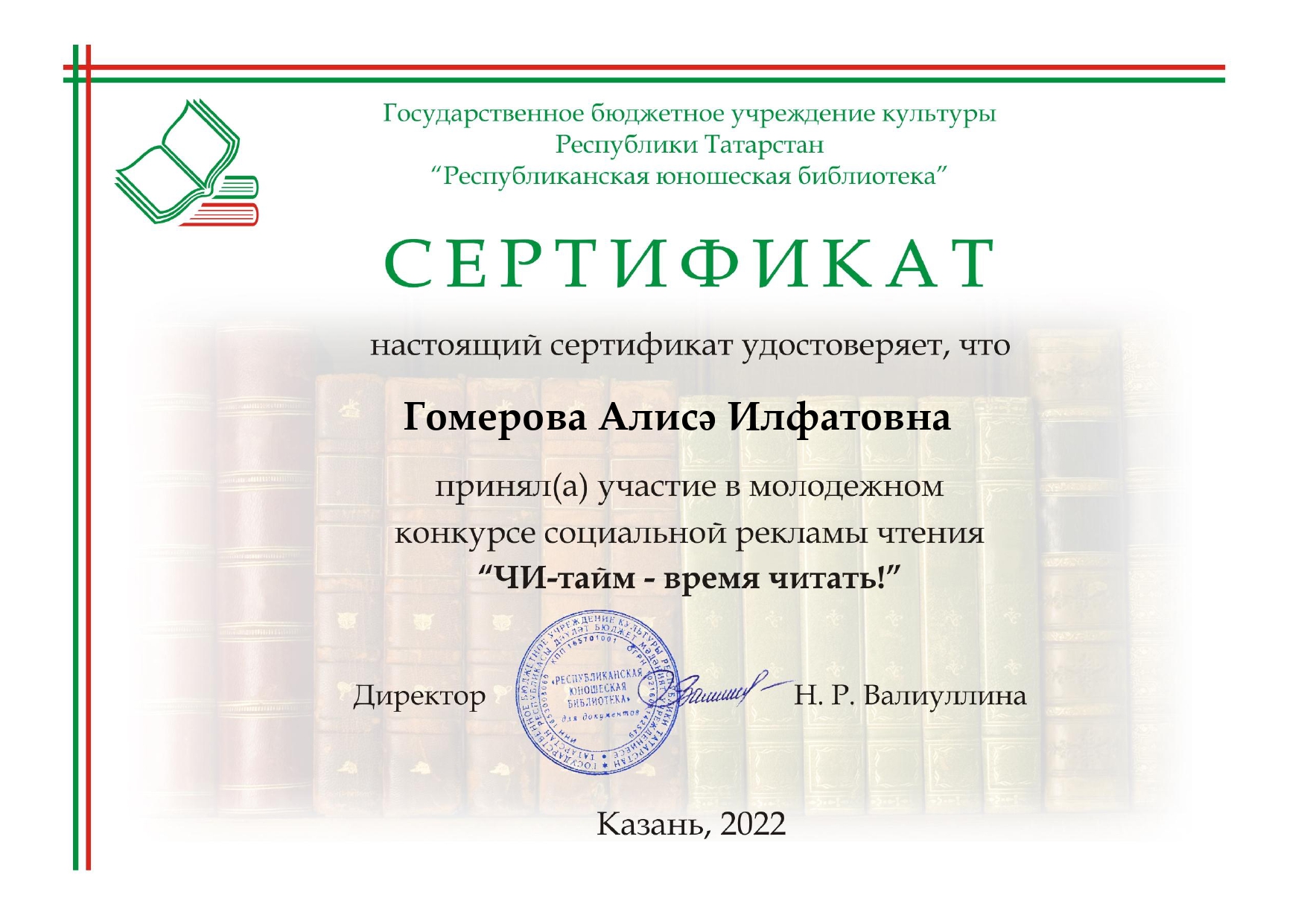 Читательница Староюрашской сельской библиотеки Гомерова Алиса приняла участие в республиканском конкурсе «Чи –тайм- время читать!». Она создала презентацию на книгу Ибрагим Газиа «Синең хатларың”.