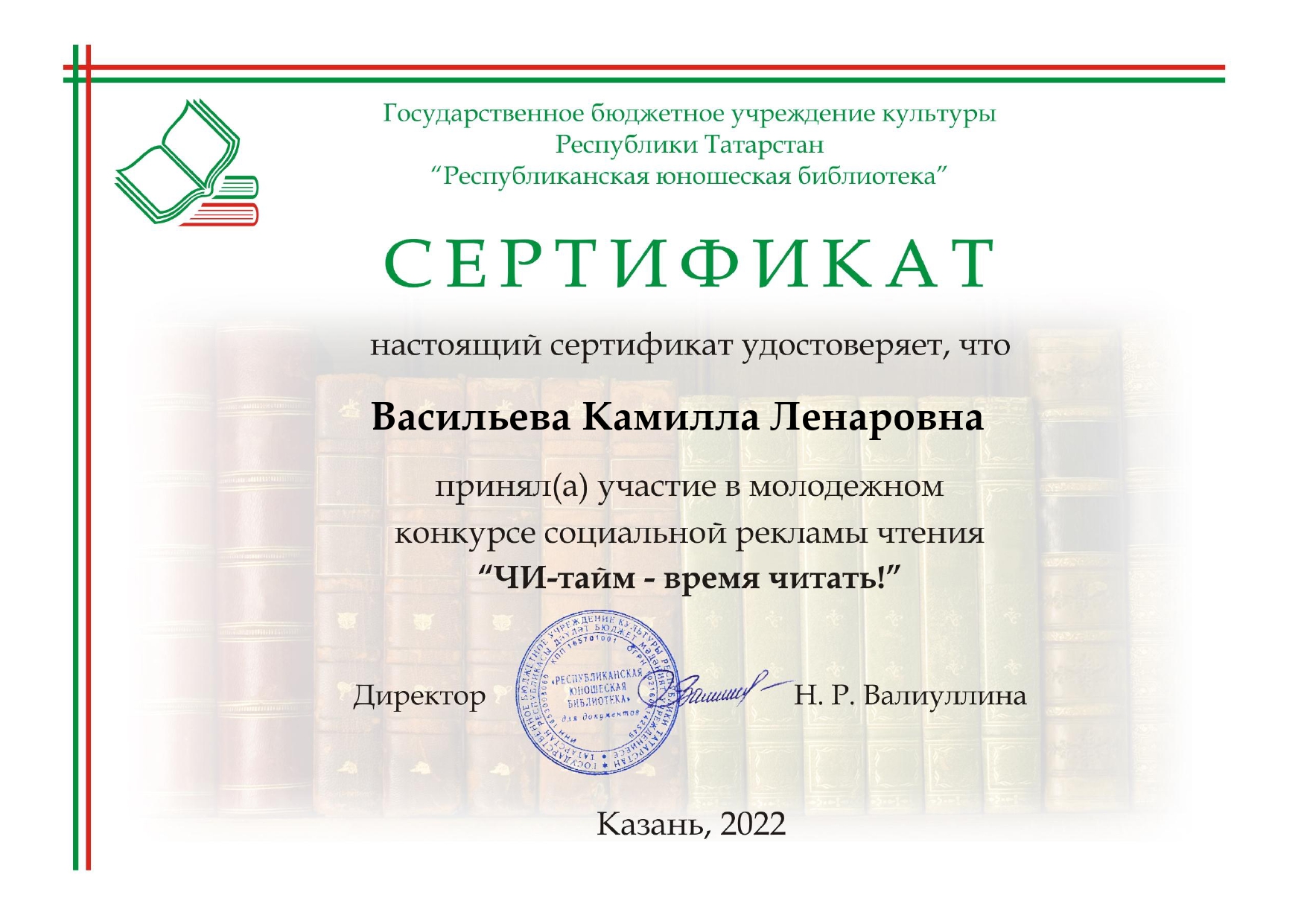 Читательница Бехтеревской сельской библиотеки Васильева Камилла приняла участие в республиканском конкурсе «ЧИ – тайм – время читать!». Она представила рекламу на любимую книгу «Мое любимое Чучело». Наша Камилла за свою работу получила сертификат! Поздравляем!!!