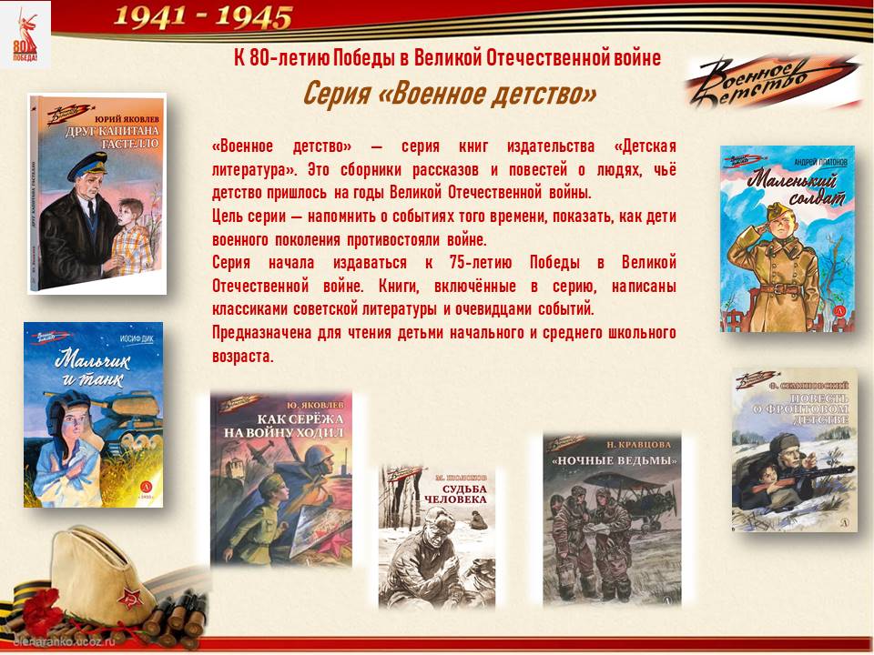 В рамках Года защитника Отечества и 80-летия Победы в Великой Отечественной войне детская библиотека - филиал № 3 представляет вниманию читателей книги о военном детстве, поступившие в фонд библиотеки.