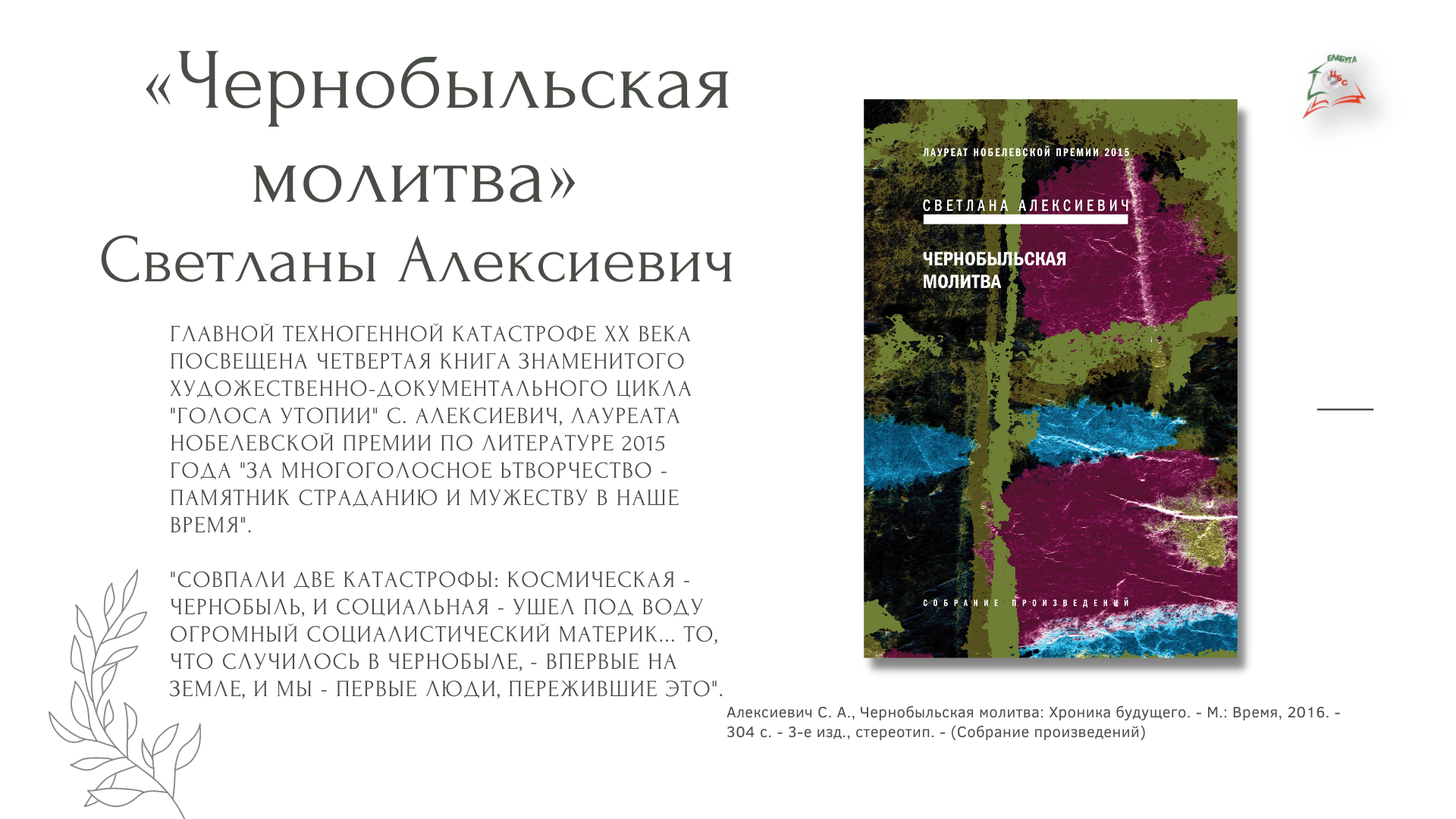 «Чернобыльская молитва» С. Алексиевич: библиотекарь рекомендует