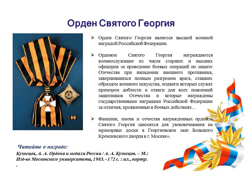 «Орден Святого Георгия является высшей военной наградой Российской Федерации.