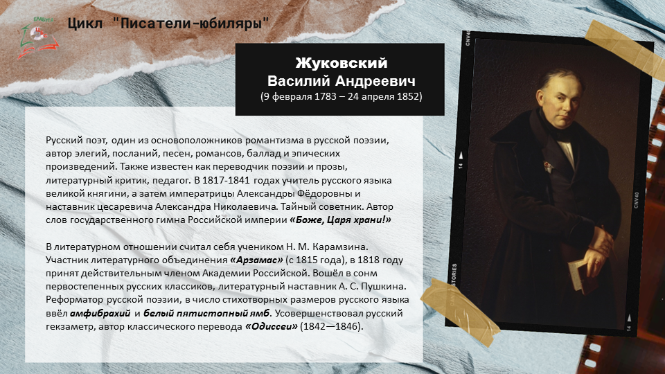 В честь 240-летия русский поэта, одного из основоположников романтизма в русской поэзии Василия Андреевича Жуковского абонемент Центральной библиотеки имени А.С. Пушкина представляет вашему вниманию информационную страницу «Переводчик в стихах – В.А. Жуковский».