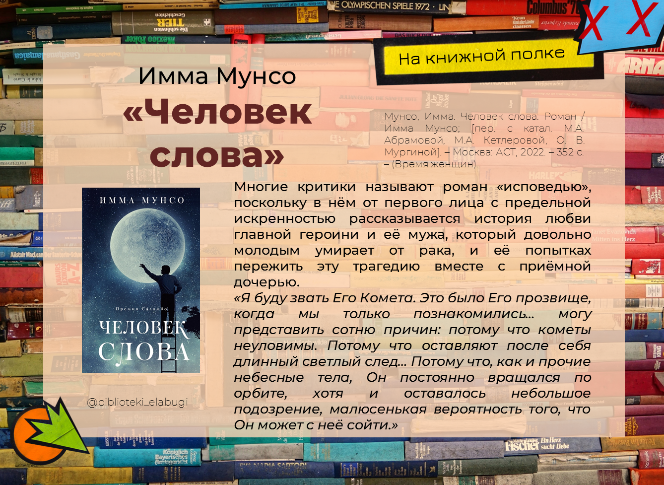 В еженедельной рубрике "На книжной полке" абонемент Центральной библиотеки имени А.С. Пушкина рекомендует к прочтению книгу Иммы Мунсо "Человек слова".