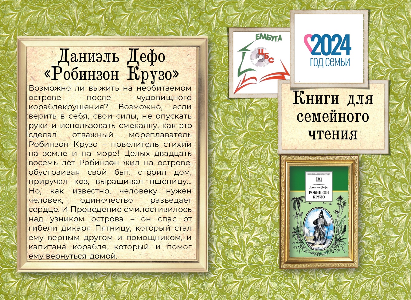 Абонемент Центральной библиотеки имени А.С. Пушкина в Год семьи в РФ предлагает вниманию читателей книгу Даниэля Дефо "Робинзон Крузо".