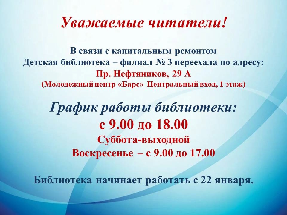 Внимание! Детская библиотека - филиал №3 (ГДК) временно находится по новому адресу!