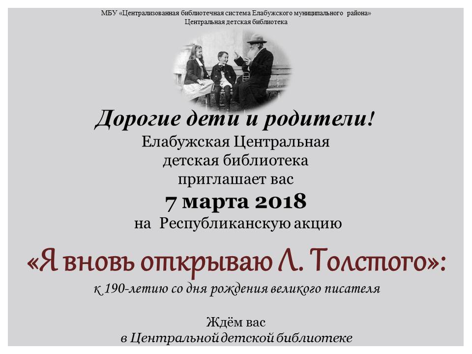 Республиканская акция! Я вновь открываю Л. Толстого"