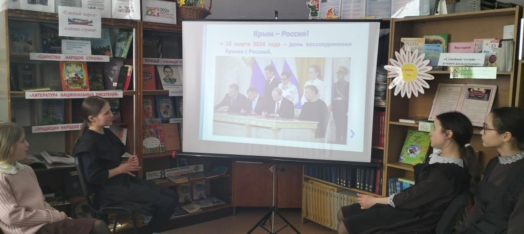 В этом году наша страна празднует 12-ю годовщину важного события новейшей истории – воссоединения полуострова Крым с Россией. Учащиеся Мари-Суксинской шклоы стали участниками познавательной викторины «Одна страна — одна история». Ребята смогли погрузиться в увлекательный мир истории полуострова и его значимой роли в судьбе нашей страны. Библиотекарь подготовили вопросы, охватывающие самые разные эпохи: от древних времен до событий Крымской весны. Данное мероприятие стало отличной возможностью для учащихся узнать больше о богатом наследии Крыма и его значении для нашей страны.