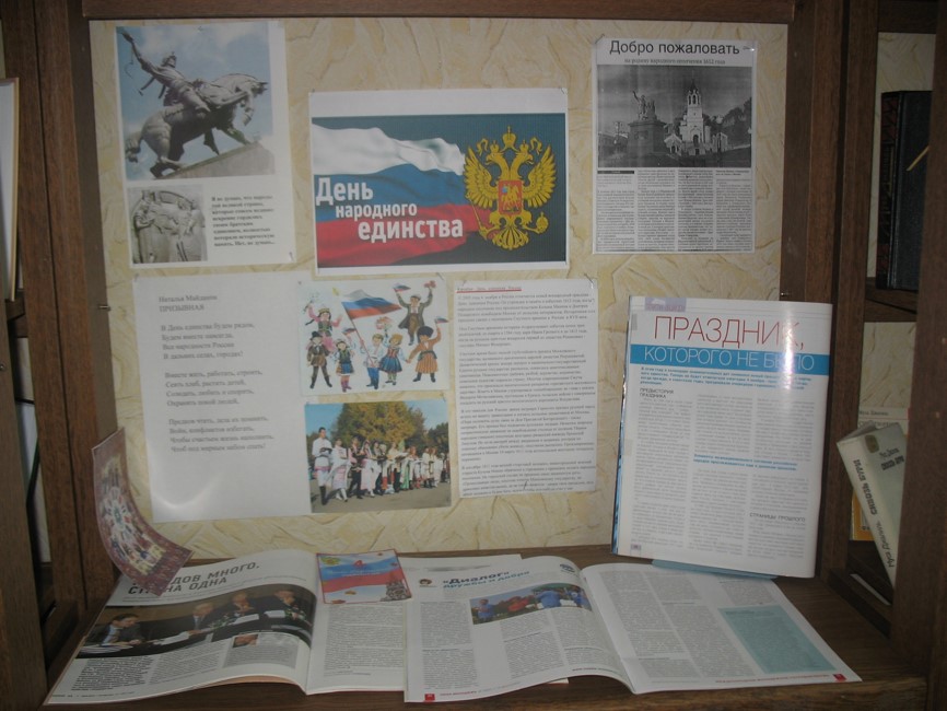 В читальном зале нашей библиотеки работает информационно-познавательный стол "Через книгу к согласию", посвященный Дню народного единства