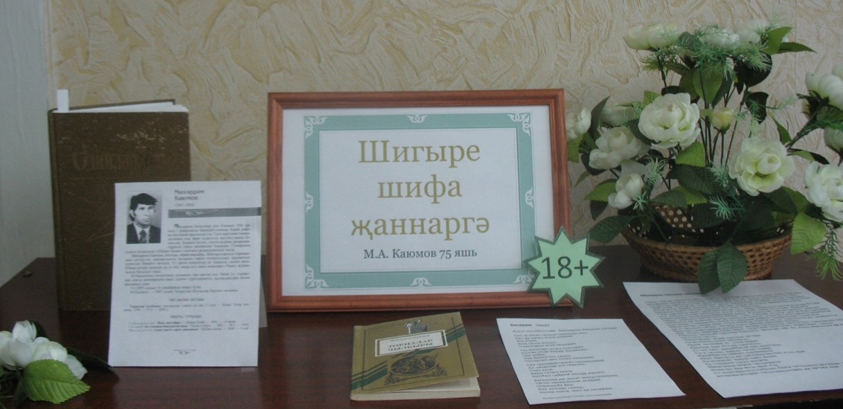Известному татарскому поэту, прозаику, сатирику посвящена книжная выставка-беседа «Шигыре шифа җаннарга”. На ней размещен материал о жизни и творчестве поэта, воспоминания о нем, фотодокументы. Использованы статьи из журнала Казан Утлары. Также представлены произведения автора.