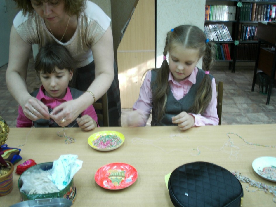 Сегодня состоялось очередное занятие клуба "Умелые ручки". Ребята познакомились с различными способами плетения из бисера. Вместе с руководителем, используя книги и журналы, они творчески подошли к изготовлению украшений.