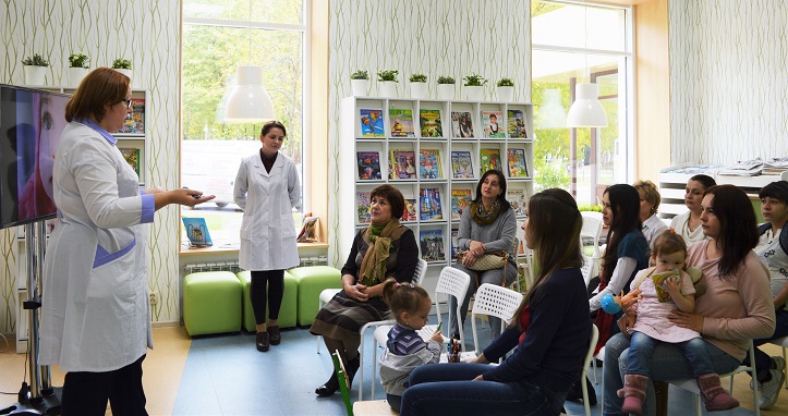 У многих людей складывается твердое убеждение в том, что здоровье ребенка целиком и полностью на совести детских врачей. О том, что это далеко не так, смогли убедиться сегодня, молодые мамы, которые пришли на встречу "за круглым столом" со специалистами отделения медико-социальной помощи детской городской больницы с перинатальным центром, организованную библиотекарями. А пока мамы узнавали секреты здоровья, их малыши были увлечены развивающими играми.