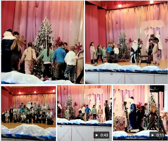 Для детей провели праздничную программу "У новогодней елки". Дед Мороз и Баба Яга водили хоровод, дети спели новогодние песни и прочитали стишки. В играх дети проявили ловкость и смекалку. Каждый участник получил от Деда Мороза сладкие призы.