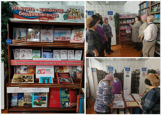 2026 ел - Россиядә халыклар бердәмлеге, Татарстанда хәрби батырлык һәм хезмәт фидакарьлеге елы уңаеннан китапханәдә оештырылган күргәзмәгә күзәтү ясалды. Күргәзмәдә Россия халыклары турында информация, әдәбияты үрнәкләре белән танышырга була. Татарстан Бөек Ватан сугышы елларында хезмәт батырлыгы күрсәткән республика буларак танылган. Казан (2020) һәм Яшел Үзән (2025) "Хезмәт батырлыгы шәһәре" дигән мактаулы исемгә лаек булдылар. Әлеге исем Бөек Ватан сугышы елларында хәрби һәм гражданнар продукциясе предприятиеләрендә өзлексез җитештерүне тәэмин иткән, шуның белән коллектив хезмәт батырлыгы күрсәткән шәһәрләргә бирелә.