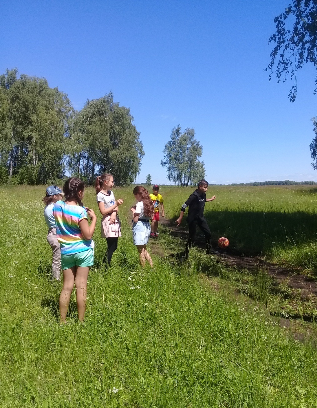 Җәйге лагерьның икенче көнендә балалар белән урманга бардык. Анда төрле кызыклы спорт уеннары уйнатылды (Волейбол, йөгеру , озынлыкка сикеру х.б ) .