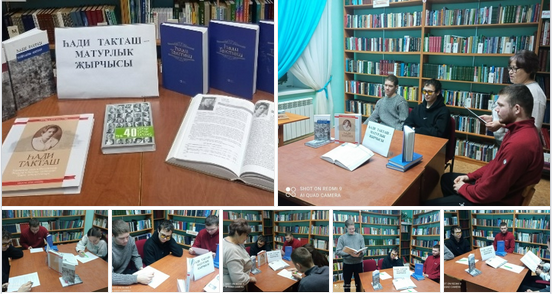 16 январь көнне, Хади Такташың тууына 125 булуга багышланган "Һади Такташ- матурлык җырчысы" дип исемләнгән әдәби сәгать уздырылды. Китапханәче шагыйрьнең тормыш юлы һәм иҗаты белән таныштырды. "Мокамай" поэмасы һәм шигырьләре укылды. Китап күргәзмәсенә күзәтү ясалды. Шагыйрьнең иҗаты буенча викторина сорауларына җавап бирделәр.