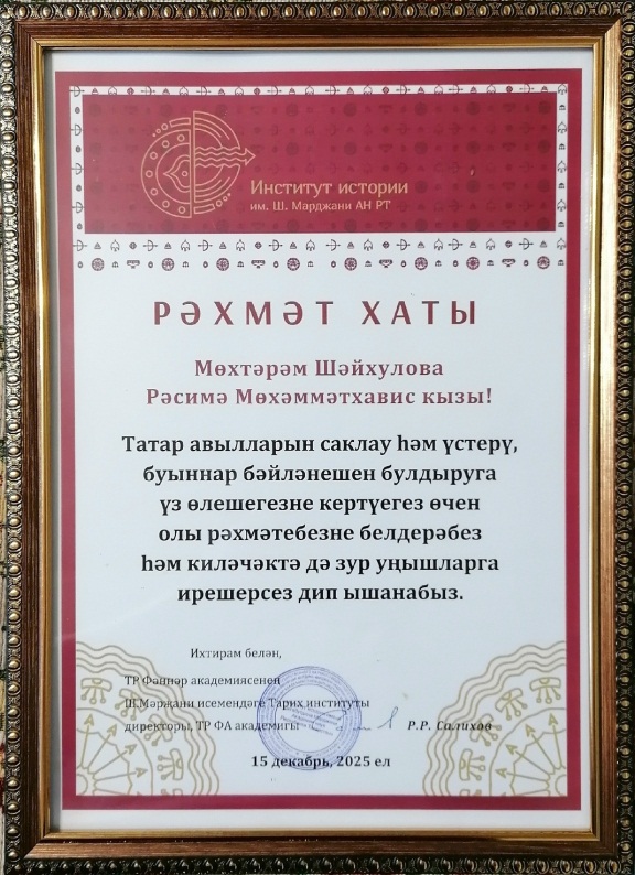 ТР Фәннәр академиясенең Ш. Мәрҗәни исемендәге тарих институтында Ватанны саклаучылар елы һәм "Татарлар Ватанны саклауда" дәүләт программасын гамәлгә ашыру юнәлешендә (25.04.2025) "Татар нәселләре Ватанга хезмәт итүдә" һәм (11.09.2025) "Татарлар Россия империясенең регуляр булмаган гаскәр төркемендә" дип исемләнгән Бөтенроссия фәнни конференцияләре узды. Конференциядә китапханәче Рәсимә Шәйхулова да катнашты һәм Чалпы авылына нигез салган "Нугайбәкләр нәселенең Ватан алдындагы хезмәтләре", "Нугайбәковлар-кантон башлыклары" дип исемләнгән темаларга доклад белән чыгыш ясады.