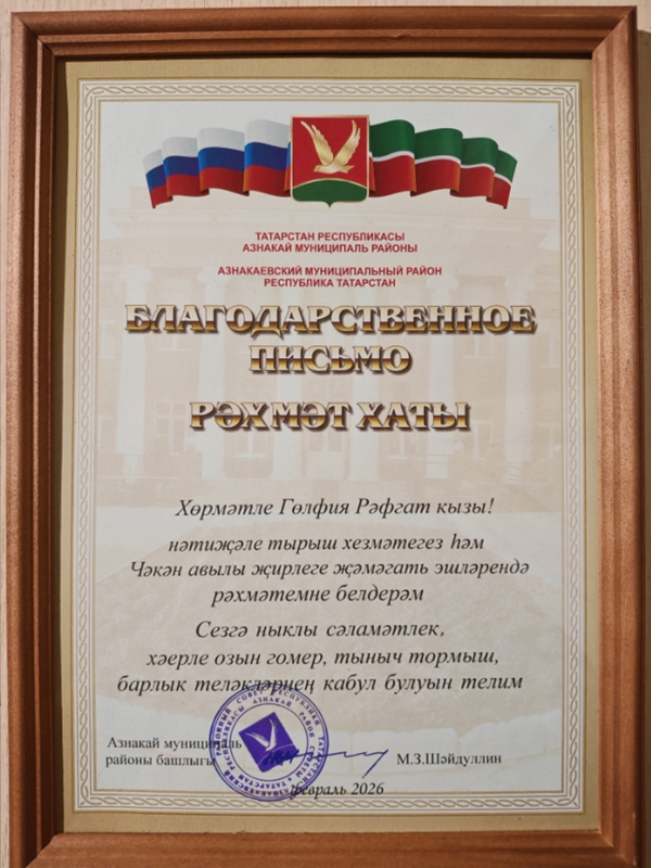 За общественную работу в селе Чекан, благодарственным письмом награждена библиотекарь Чеканской сельской библиотеки.