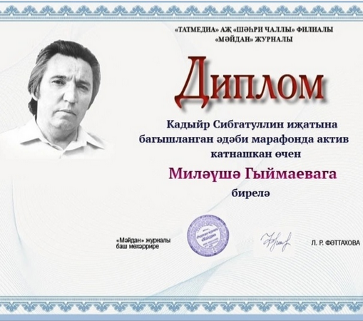 Әдәби марафонда актив катнашкан өчен Миләүшә Гимаевага диплом бирелә.