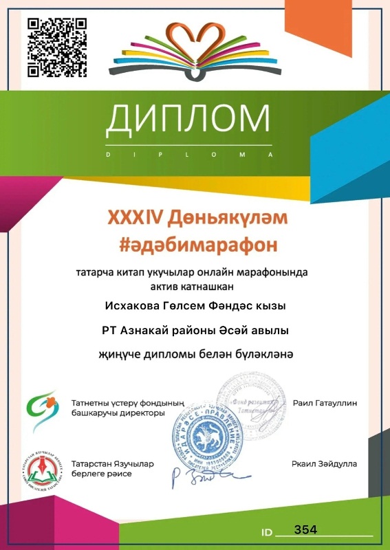Диплом за активное участие в онлайн-марафоне выдан библиотекарю Асеевской сельской библиотеки.