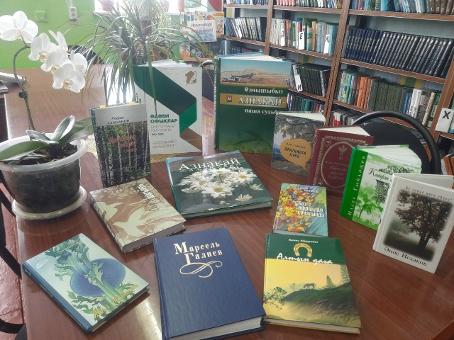 Язучылар көне уңаеннан китапханәдә якташ язучыларыбызның китапларыннан торган күргәзмә оештырылды.