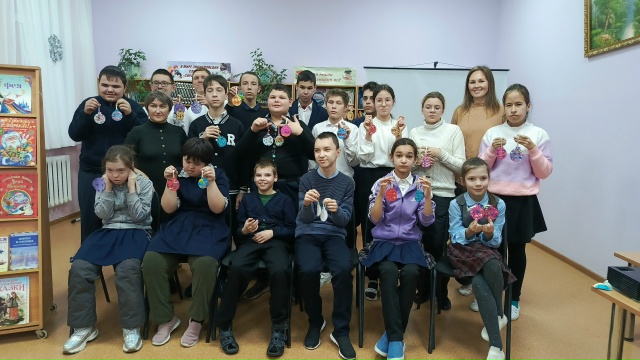 В рамках декады инвалидов, 12 декабря, библиотекарь читального зала районной детской библиотеки провела урок милосердия «Души и сердца вдохновенье». С участием учеников ГБОУ «Азнакаевская школа для детей с ОВЗ». Мероприятие началось с путешествия в Страну Добра. Дети отвечали на вопросы библиотекарей на тему: «Какого человека можно назвать добрым?», «Какие поступки украшают?», вспомнили «волшебные слова». После беседы они побывали на станциях «Где спряталось добро?», «Угадай мелодию», «Доскажи словечко», «Сказочная долина». Провели расслабляющее упражнение «Волшебный цветок добра. Второй частью мероприятия стал мастер-класс по изготовлению новогодних елочных игрушек. Дети своими руками украсили новогодние елочные игрушки с помощью пластилина, паеток и бусинок.