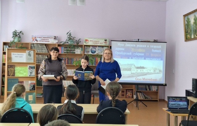 В районной детской библиотеке прошло громкое чтение «Имя поэта в сердце живет», посвященное 120-летию со дня рождения Мусы Джалиля – татарского поэта, журналиста и Героя Советского Союза. Его стихи, полные идей добра и смелости, помогли воспитать много поколений людей. Дополнительно была организована обзор выставки «Муса Джалиль – наш герой», где читатели смогли ознакомиться со сборниками его произведений. Непокорённый дух поэта, не сломленного вражескими застенками, отражён в его героических строках, которые и сегодня служат мощным напоминанием о необходимости помнить жертвы и подвиги тех, кто отстоял мир. Мероприятие завершилось показом видеоролика о жизни и творчестве поэта.