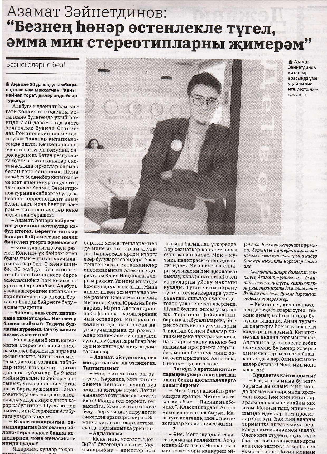 Азамат Зәйнетдинов: " Безнең һөнәр өстенлекле түгел, әмма мин стереотипларны җимерәм"// Алабуга Нуры.- 2025.- №21.