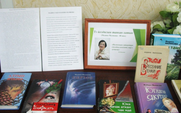 Бу күргәзмәдә Мәдинә Маликованың тормышы hәм иҗат юлы турында белеп була, аның укучылар белән иң яратылган китаплары күрсәтелә.
