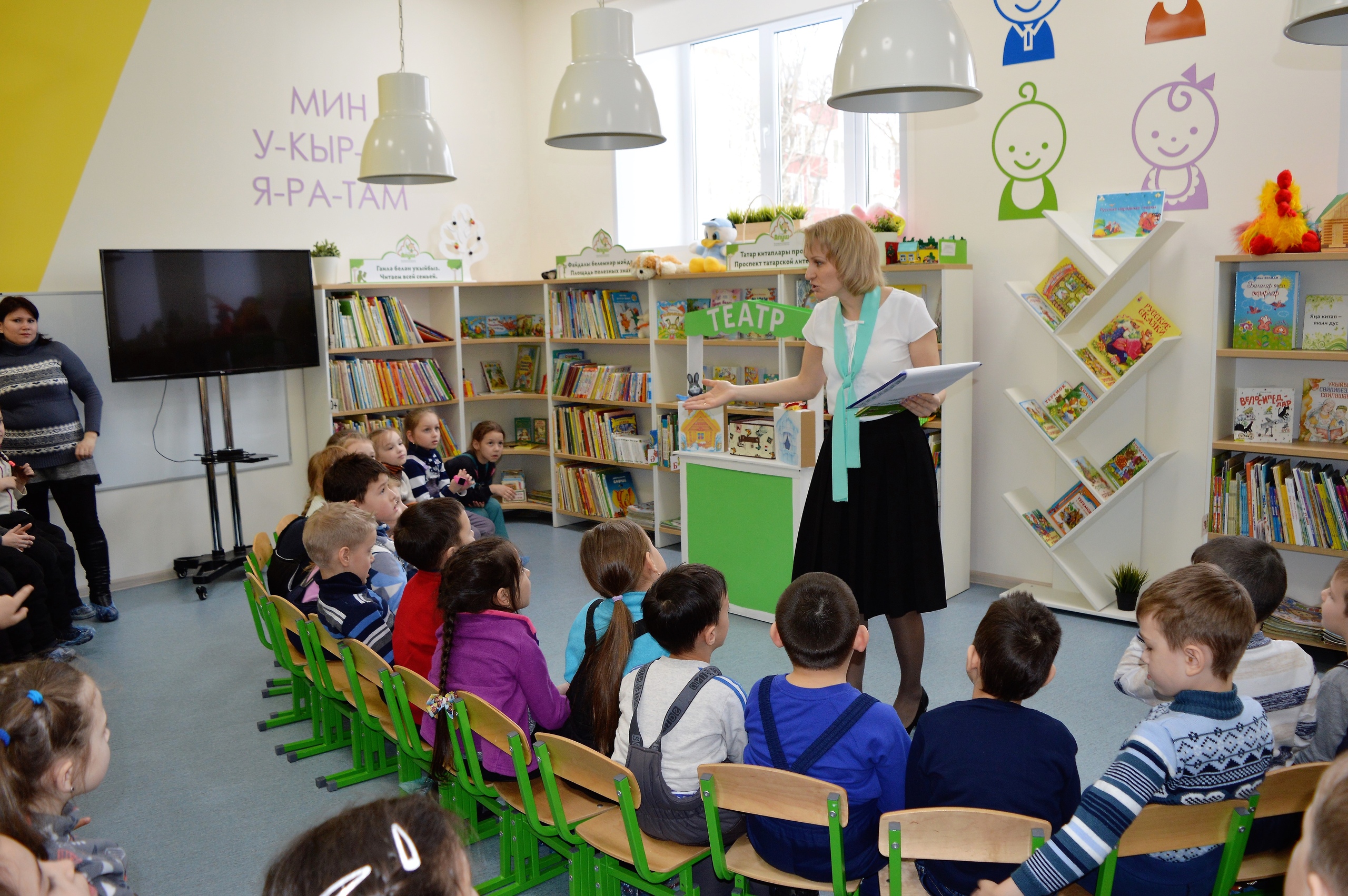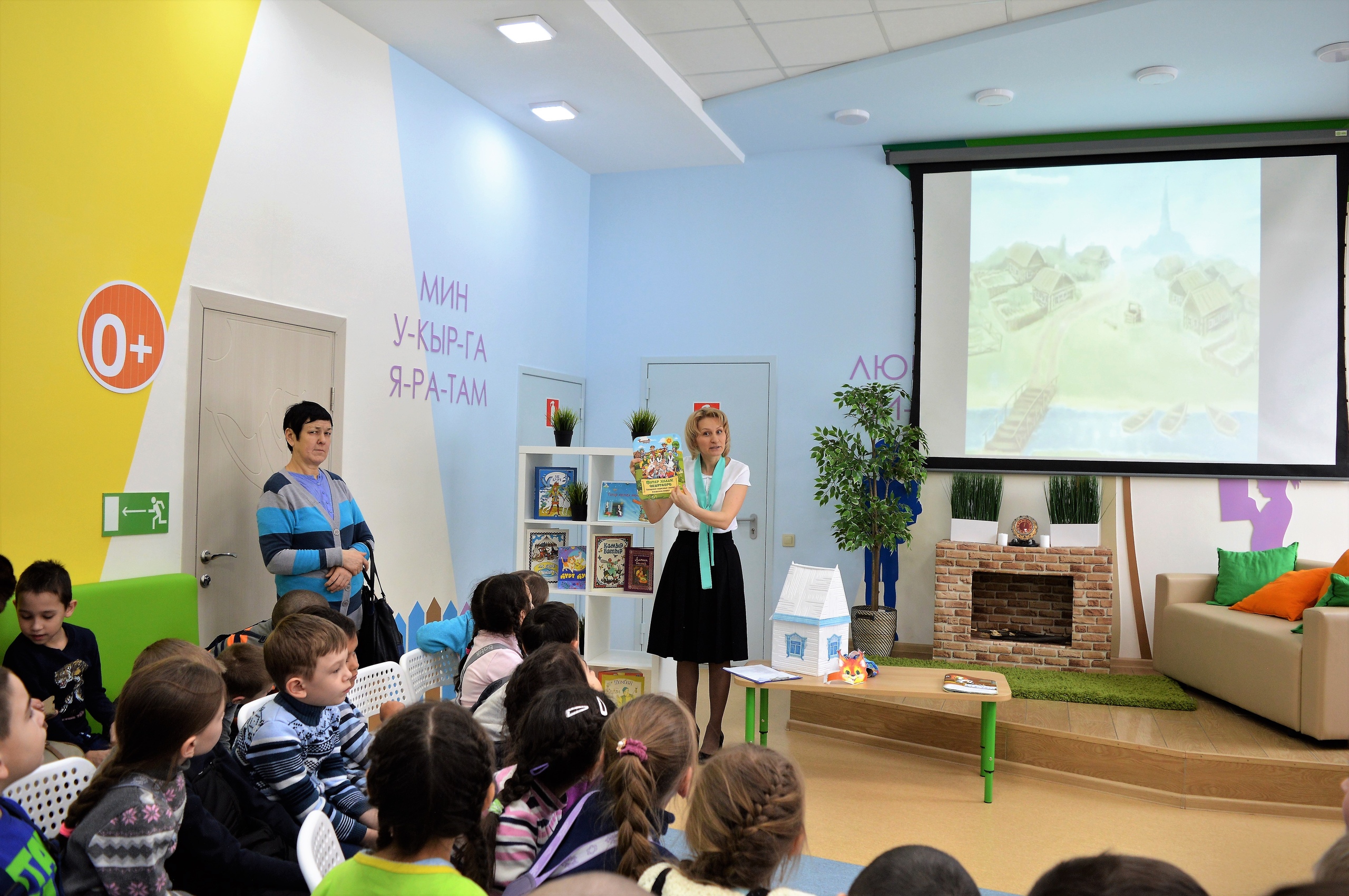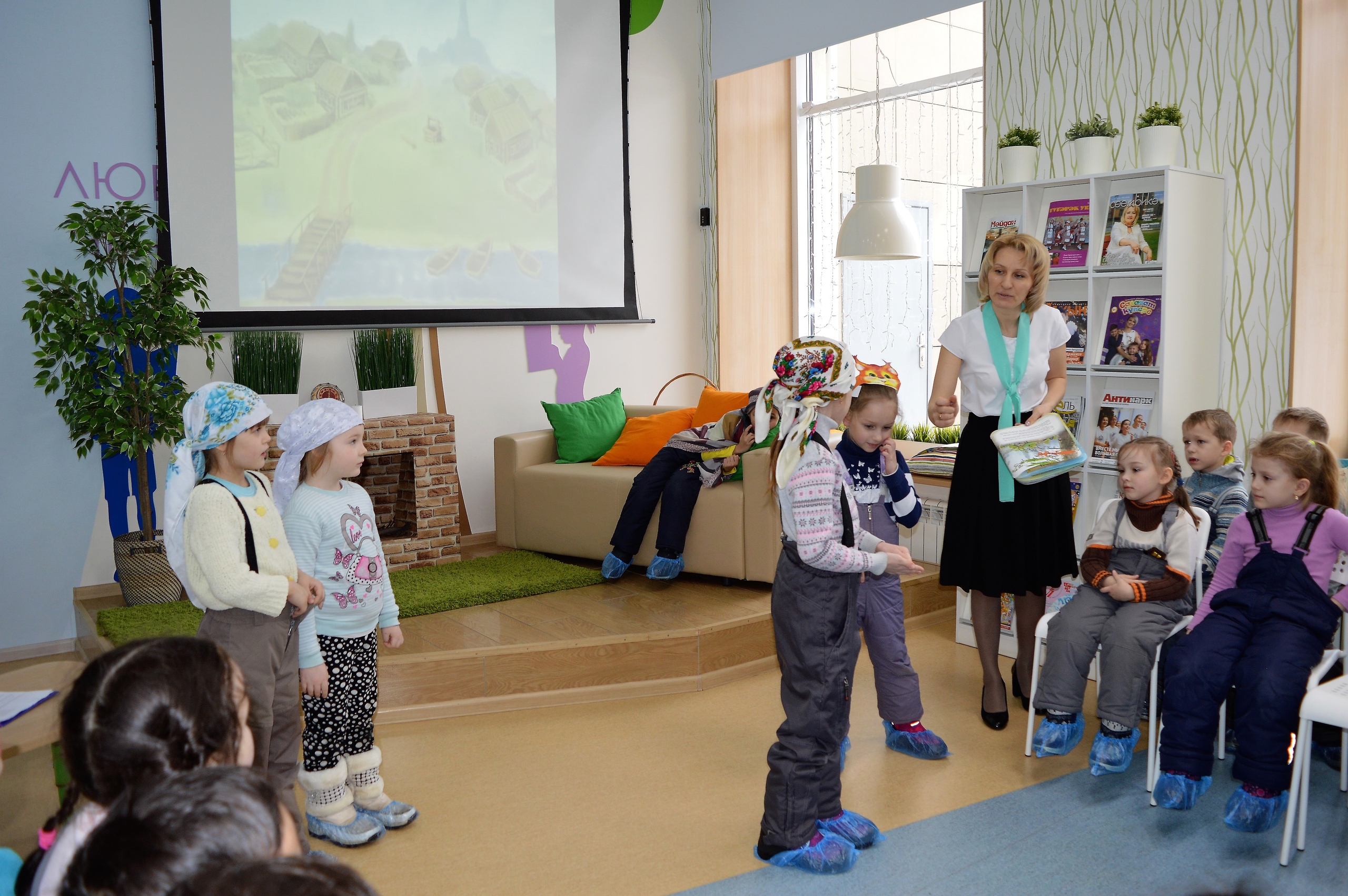 Бүген бездә 83 нче балалар бакчасы кунакта булды. Туган тел көненә багышланган уен-сәяхәттә катнашып, балалар татар һәм рус халык әкиятләре белән таныштылар. Алар "Өч кыз", "Заячья избушка" әкиятләрен сәхнәләштерделәр, "серле" сандыкны ачып биремнәр үтәделәр һәм "Каз һәм Төлке" әкиятенә төшерелгән мультфильм карадылар.