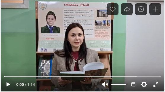 Район Үзәк китапханәсе Габдулла Тукайның тууына 140 ел уңаеннан "Тукайны бергәләп укыйбыз" акциясенә кушылды. Укый китапханәче Галиева Альмира "Китап".